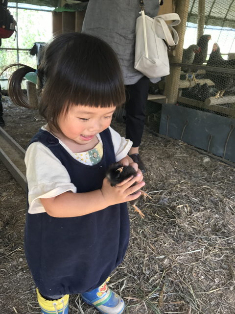 最初の触れ合いはヒヨコでした。