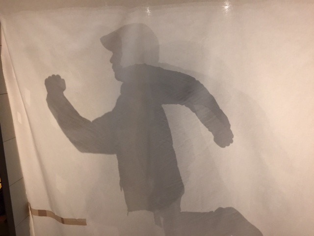 山下が影絵遊び。