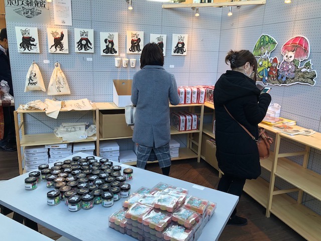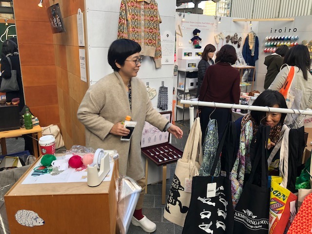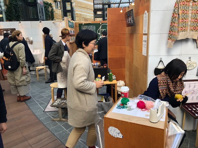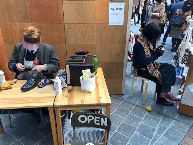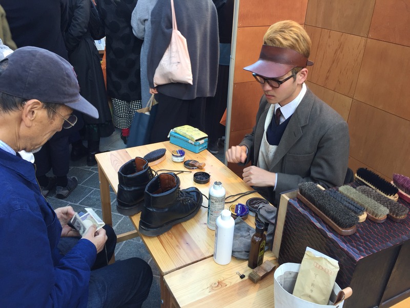編み物と靴磨きが隣り合う。