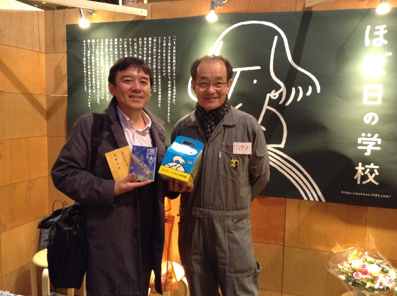 お一人は、科学雑誌『ニュートン』編集部の板倉さん。書籍もお買い上げいただきましたが、その手には「アースボール」も! 「ぼくたちも地球儀については、あれこれ考えてきたんですけど、こういう手があったんですねー」と感心しきり。?プロ?もうならせた「アースボール」です!