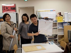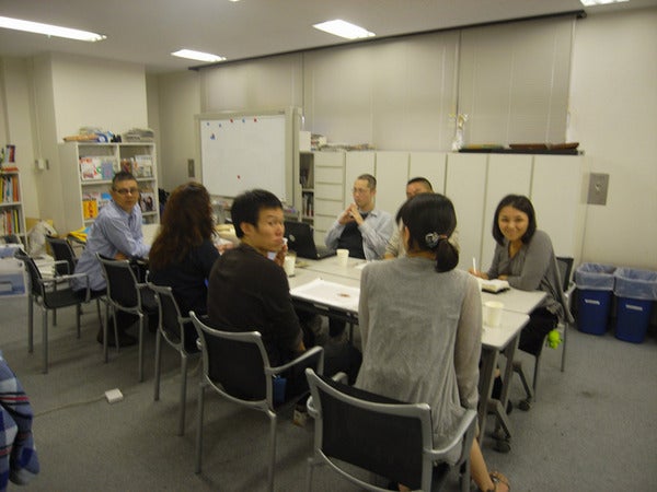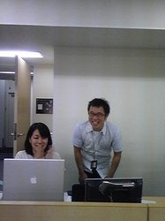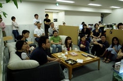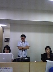 管理チームの席の近くで、