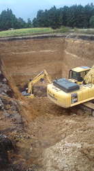 穴の底で掘ってるユンボって