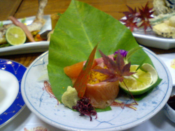 ますのお刺身にあしらわれた