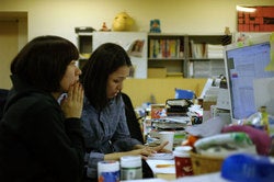 パソコン画面に向かって