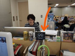 ふせんの入ったボックスを持って
