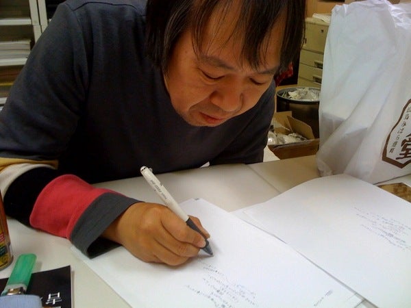 (祖父江さんが絵を描いてます。