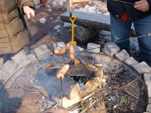 焚き火でソーセージを焼きました。