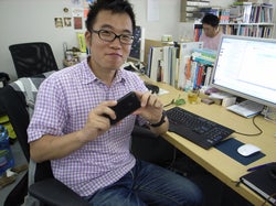 このグレーのズボンの足の持ち主が