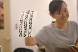 ラベルのようなものを配っていました。
