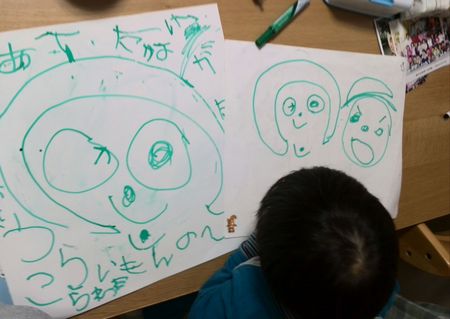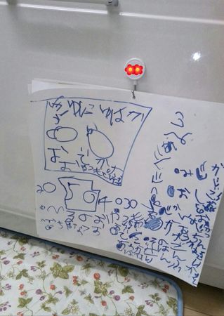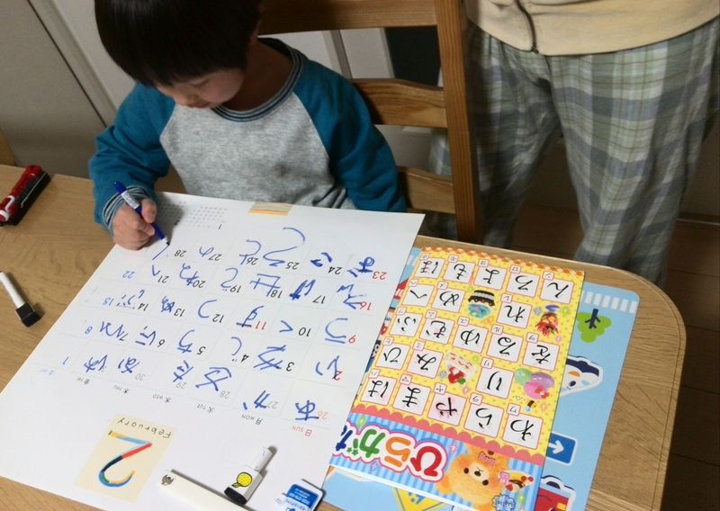カレンダーにお絵描きしたり、ひらがなをかいたり。