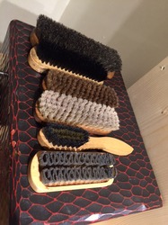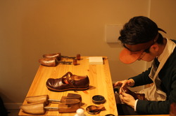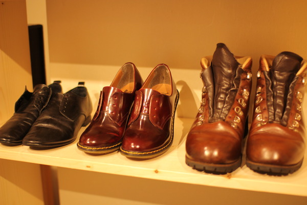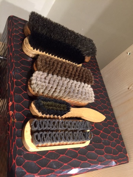 作業台の横には、磨かれたい靴たちが、