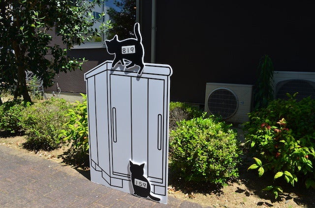 会場内の街並みに迷子猫パネルを隠し、