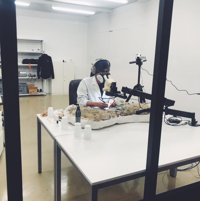 ライブで見られる化石のクリーニング風景、