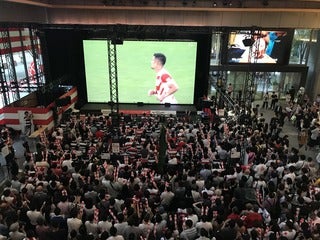 巨大スクリーンで決勝トーナメントの試合の