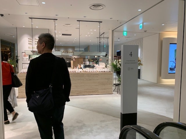 感慨深げにエスカレーターで
