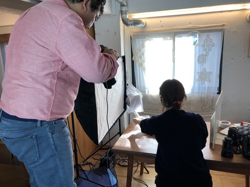 幡野広志のことばと写真展、打ち合わせ中。