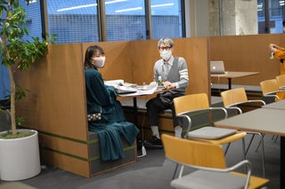 社内の会議室でディスタンスをとるために、