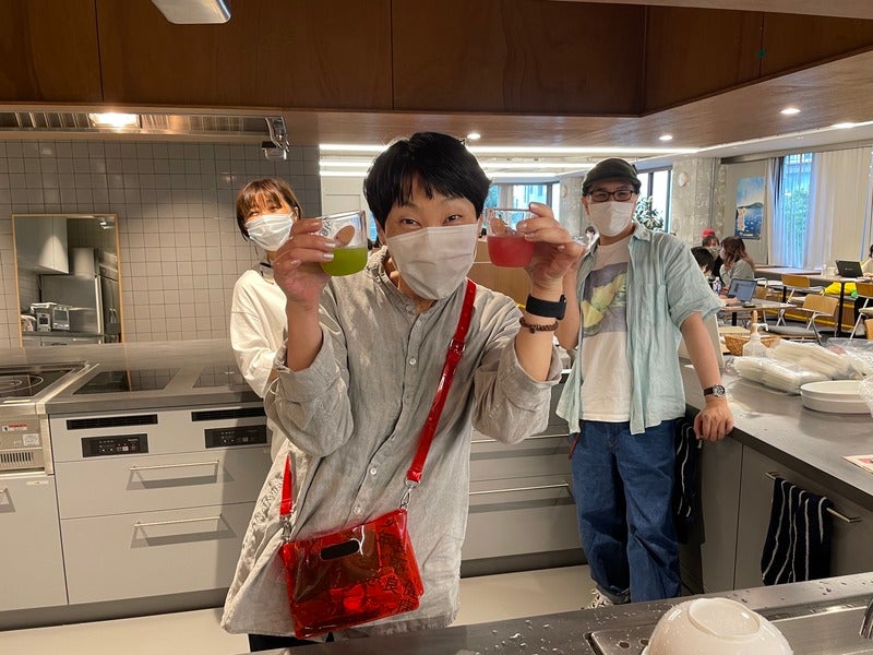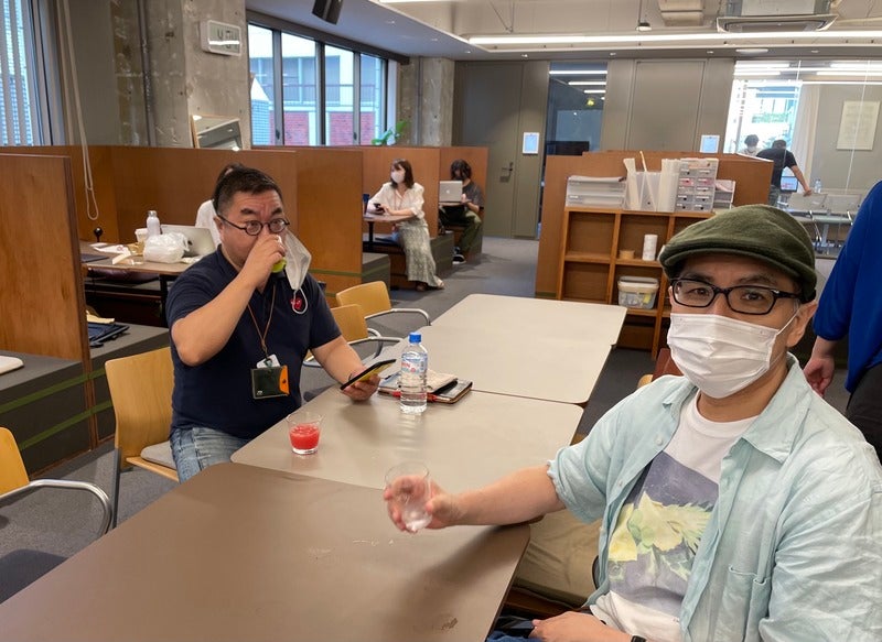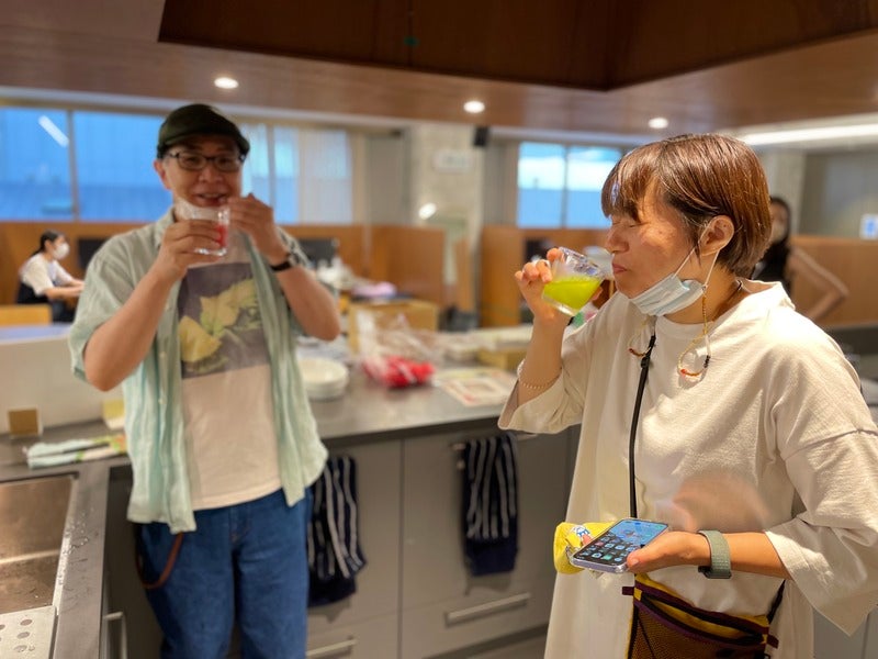 畑deしぼりを飲んでいるのが
