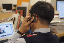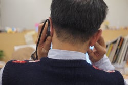 左の耳には、会社の電話の子機。