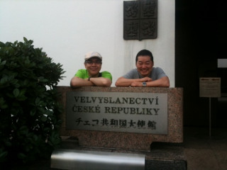 スタジオで撮影をしていると、 どっかで見た顔が。 別プロジェクトの下見でやって来た、