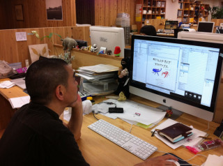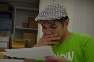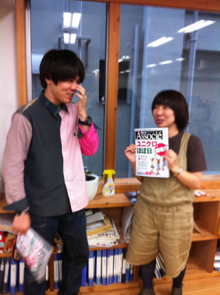 今回作っている本はDVDつきなのですが その綴じ込み方については、 これまで右往左往しておりました。 しかし、力を結集し、とうとう 「これだ!」という仕様に たどりつきました。 現在、デザイナーの清水メガネさんが 印刷会社の佐藤メガネさんに 仕様変更の願い出をしているところです。 でも、気になるのが、 佐藤メガネさんのダンマリ具合。 (口に手を当てたまま凝固して動かない)