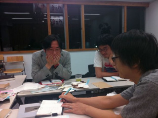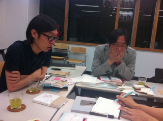 書籍制作チーム・グラッシーズです。 打ち合わせをしています。 今日もメンバーのメガネっぷりが すごいです。