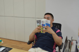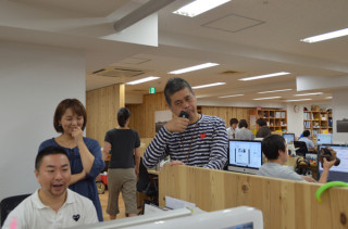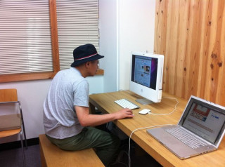 えつこミュウゼ大誕生展のリアル展覧会場のとなりの部屋はネットでも閲覧いただけるようPCが何台か置いてございます。「あ、お客様だ」と見に行ったらシャチョーでした。しかも、ネットニュースをふつうに見ていた。
