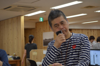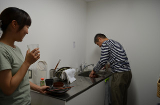 社長シリーズはどんどん続く。これは、あの「ほぼ日の給食」があった日だ。係のモトキが手招きをするので、みにいってみると‥‥。社長が自分のたべた給食の食器をウォッシング中でありました。いや、ただそれだけなんですけどね。社長は案外、キッチンまわりに強い男でありますからして。(たぶん)