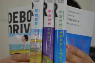 あ、シェフが漫画を‥‥3冊同時に読んでいる!訳は無いじゃあありませんか!どうしたんですか?「朝倉世界一さんといえば、 思い出しませんか、 茂木さん!」あ、ブリーフ!「そう、あの 白いブリーフのコンテンツで イラストをかいてくださった 朝倉世界一さんです。 彼の漫画、 『デボネア・ドライブ』を 購入したわけですよ。 それが、さきほど届いて うっとりしているところです。」ほほう。ほほう。これは‥‥「マンガでドミノ」ではまだ繋がってません‥‥ね。いつか、きっと!