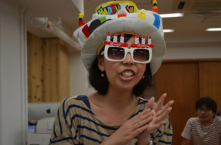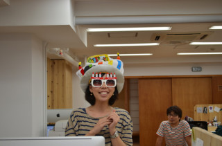 50人以上の乗組員がいるとそりゃもう、平均して週に一回は、誕生日の人がやってくるわけです。きょうの誕生日は、トヤマちゃんでした。おいくつですか!「29になりました。」妙齢ですね。たいへん、妙齢ですね。わたしもその頃に戻りたいとちょっと今おもいました。そんでもって、すんごい似合いますね。帽子とめがね。