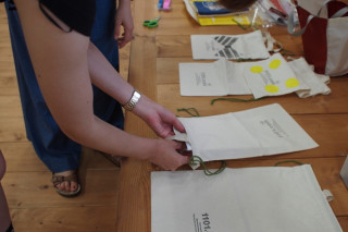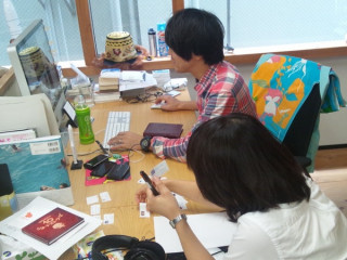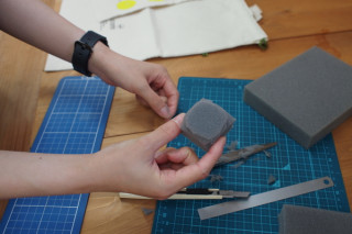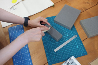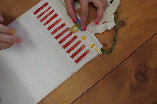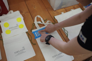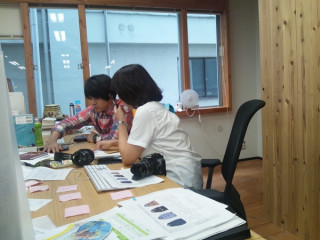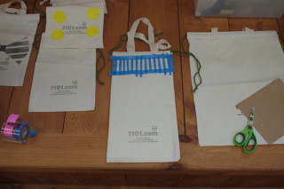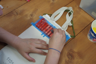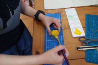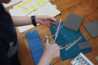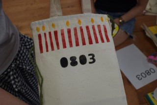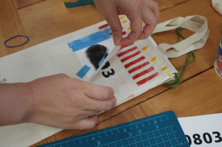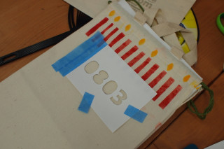 さっそくまたその場で 数字を紙にプリントアウト。 カッターで切りぬきして スポンジポンポンで色をつけました。