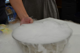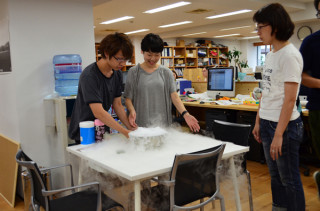 そして、このたび、 その、若きメンツは、 ドライアイスに水をかけると もくもくするということを しらなかったのであります。