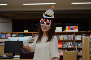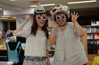 9月末〜10月にかけては、誕生日のラッシュがはじまるのです。このあと、じゃんじゃん参ります。弊社にはてんびん座のひとたちが山ほどいます。ちなみに、ゆかいな帽子をかぶった右側の女性は、不惑らしいですよ。とりあえずは、惑わず、おかしな帽子とメガネをかけたということでは、不惑なのかもしれまっせん。