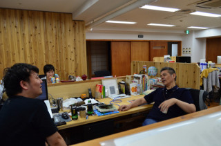 社長は自分の席について、まわりにいる乗組員と話をするのを楽しみとされているようです。今晩は、針生さんがお相手です。iPhone5をどうするか問題やその他について、トークしておりました。