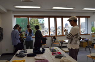 そして、さっそく 「きょうの編みもの」のなかから あみはじめた なんことみちこともぎこは、 できたところまでを ミクニットとミスミさんに みていただいたり。
