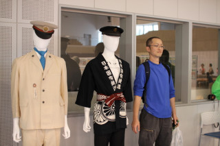(ローズアリーナ会場の建物内には 鉄道のプラレールとか 歴代の制服が展示されていました。 いちばん右は マネキンではありません。 オトヤです)