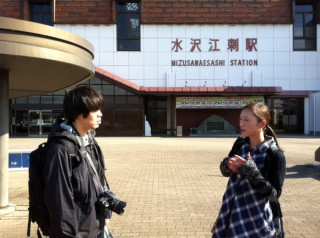 取材先の大船渡に向かう前に 水沢江刺駅で読者のかたにお会いしました。