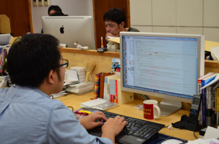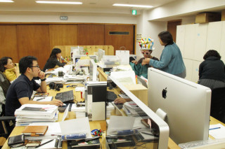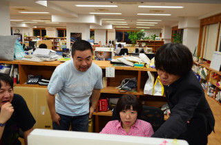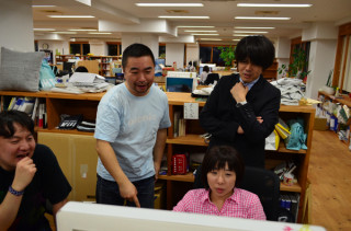 毎度おなじみ、 お昼のシャッフルのお時間です。 (明日以降の「ほぼ日」の メニューの並び順を決める。) 社内を見渡すと、 読み物チームは 永田のおとっつあんしか おりません。