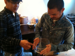 本日はウィークエンドですから、 土曜日、日曜日、月曜日ぶんの メニューを決めねばならないわけです。 おとっつあん一人じゃたいへんだから、 そのあたりにいた スズキさんと西田マンに お願いをしました。