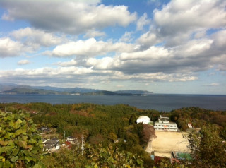 さらに移動して 唐桑半島の尖端にある 御崎(おさき)まで行って、漁火パークで昼食。 唐揚げinみそラーメン おいしかったですよ。 気仙沼は市街地から少し移動すると リアス式海岸の素晴らしい眺望が あちらこちらから望めるのですが、 漁火パークからは、 気仙沼市の隣の陸前高田市や 大船渡市が見えました。