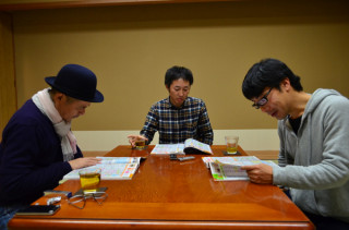 「『もういちど行きたい場所ランキング』 第1位はどこか知ってる? (みんなの答えを待たずに即答) ドイツだよ」 「旅の拠点はここにするといいよ」 「季節がよけりゃあこっちなんだけどな」 「あそこの貝はうまいよ」 など、旅の知識を真顔で披露。 国内国外、超くわしい。 すぐに飛んでいきたい旅好きの我々、 ものすごくカサイにたき付けられた瞬間、 でございました。 |