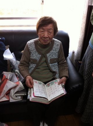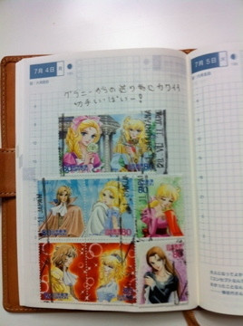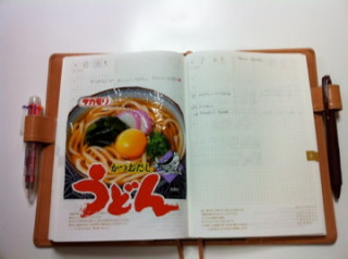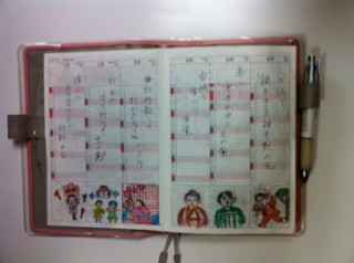 マサおばあさま (明治42年生まれ・102歳!!)は 私の知っているかぎり 最高齢のほぼ日手帳ユーザー! 毎日毎日、カズンに びっしりと日記を書いて いらっしゃいました。 ウィークリーページに書かれていた 俳句と絵もお見事! 康子おかあさまは月に1度ボランティアで つくっているぜいたくなお弁当を中心に。 尚子さんは「おいしい!」と思った うどんなど食料品のパッケージが カズンのページに大胆に貼られているのが 目を引きました。 そしてえみりちゃん(14歳)は 英語と日本語まじりで日記を書いたり、 ママのまねをして 日本からとどいた切手を貼っていたり。
