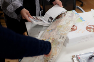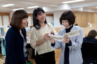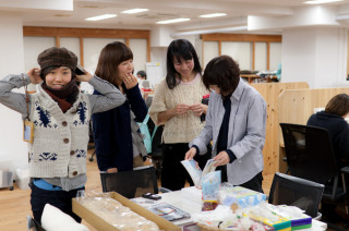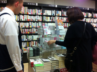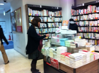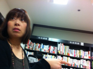 真ん中のテーブルに 石川直樹さんの新刊 『世界を見に行く。』が置いてあったので 女子らがわらわら寄っています。