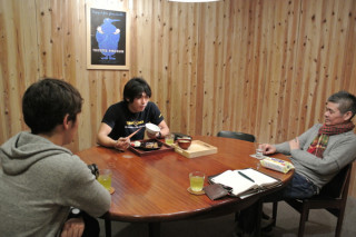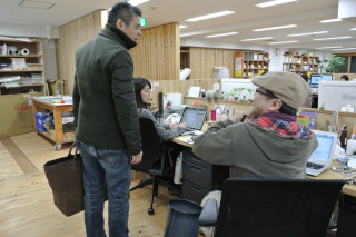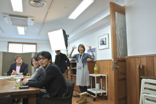 キッチンでということは、 美味しそうなニオイがいたしますので、 いろいろな人たちも 入れ替わり立ち替わりのぞきにきます。 ヒロセさんの物見遊山っぷりがいいですね。