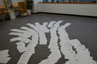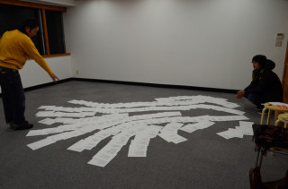 さて、永田のおっちゃんの 編集作業を追っているわけです。 パソコン全盛の時代において、 このようにして、 床に紙を広げて 作業してくれるというのは、 なんとフォトジェニコなのかと。