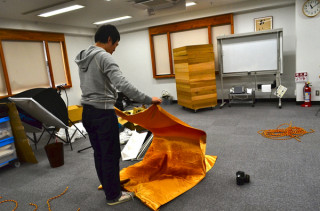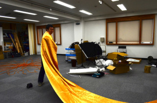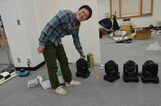 ただいま、ライブ会場の弊社大ホールでは、 山口工務店が猛烈準備中。 ライトもとどいた! (着目スべきは4台のうち1台は 山口工務店の私物である! なんだかわからないけど、 すごいぞ、ぐっさん!)