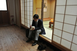 「あ、ぼく、 もうちょっと前に立ったほうが いいんじゃないですか? ブラインドも少し開けたほうがいいですよね?」