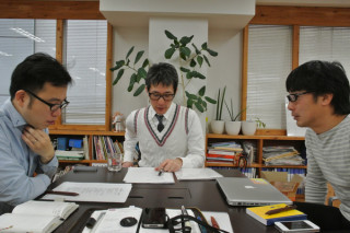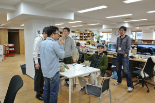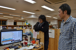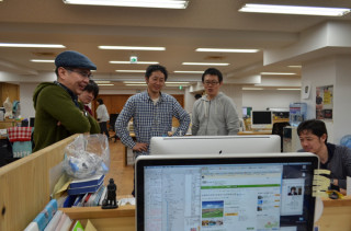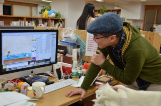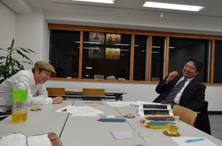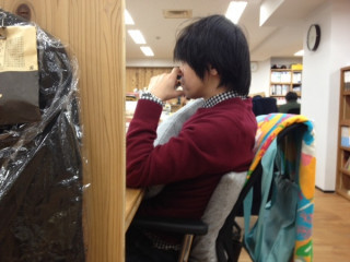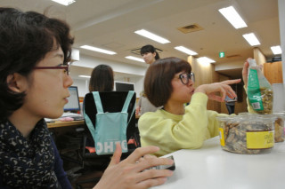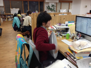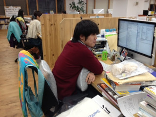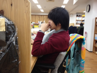といっしょに 中央のテーブルで 明日の目次のメニューの 並べ替えをしていると、 鳥が‥‥いや、人が、 寄ってきました。