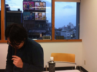 実は今度の夏のハラマキでは、 横尾さんにもご参加いただいているので、 サンプル片手に、伺って来ました。 入り口がちょっとわかりにくくて、 「努力」(隠語のほうの意味)中の 管理人さんを起こして、 場所を尋ねてしまいました。 1階というか、半地下みたいな、 高床式住居の下部分みたいな場所でした。 (写真1枚目)