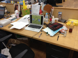 わたしのことを、さんざん言うけどさ、 自分だって、机がけっこうな惨状ですよね?